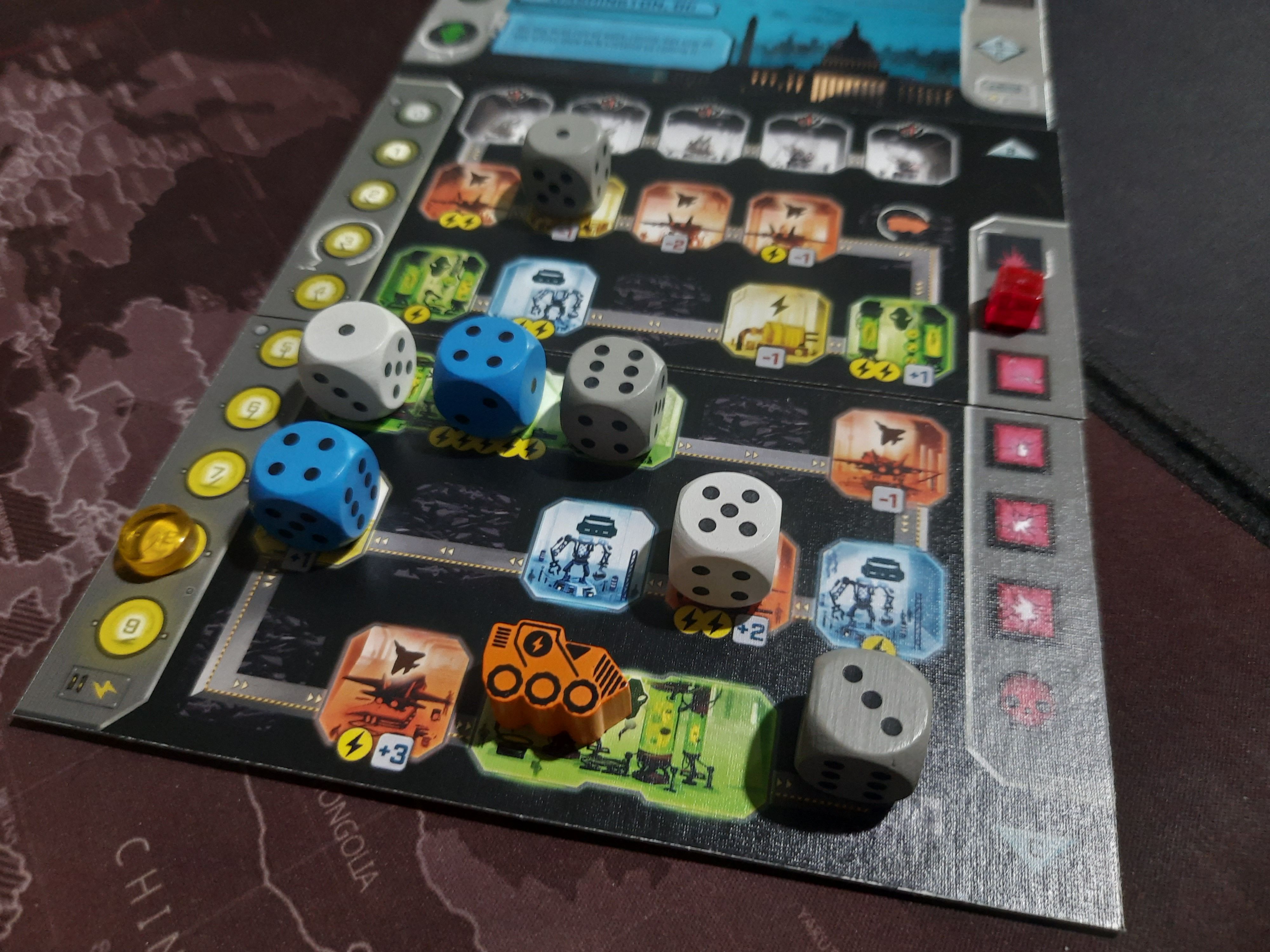 It’s like instead of assigning dice with value between 1 to 6, you assign cards with value between 1 to 5. In Under Falling Skies sometimes you need to fill size 2 room with 2 dice. When you cannot reach the total value you want then you need to rethink how to use those 2 dice which can affect the other 3 dice.
