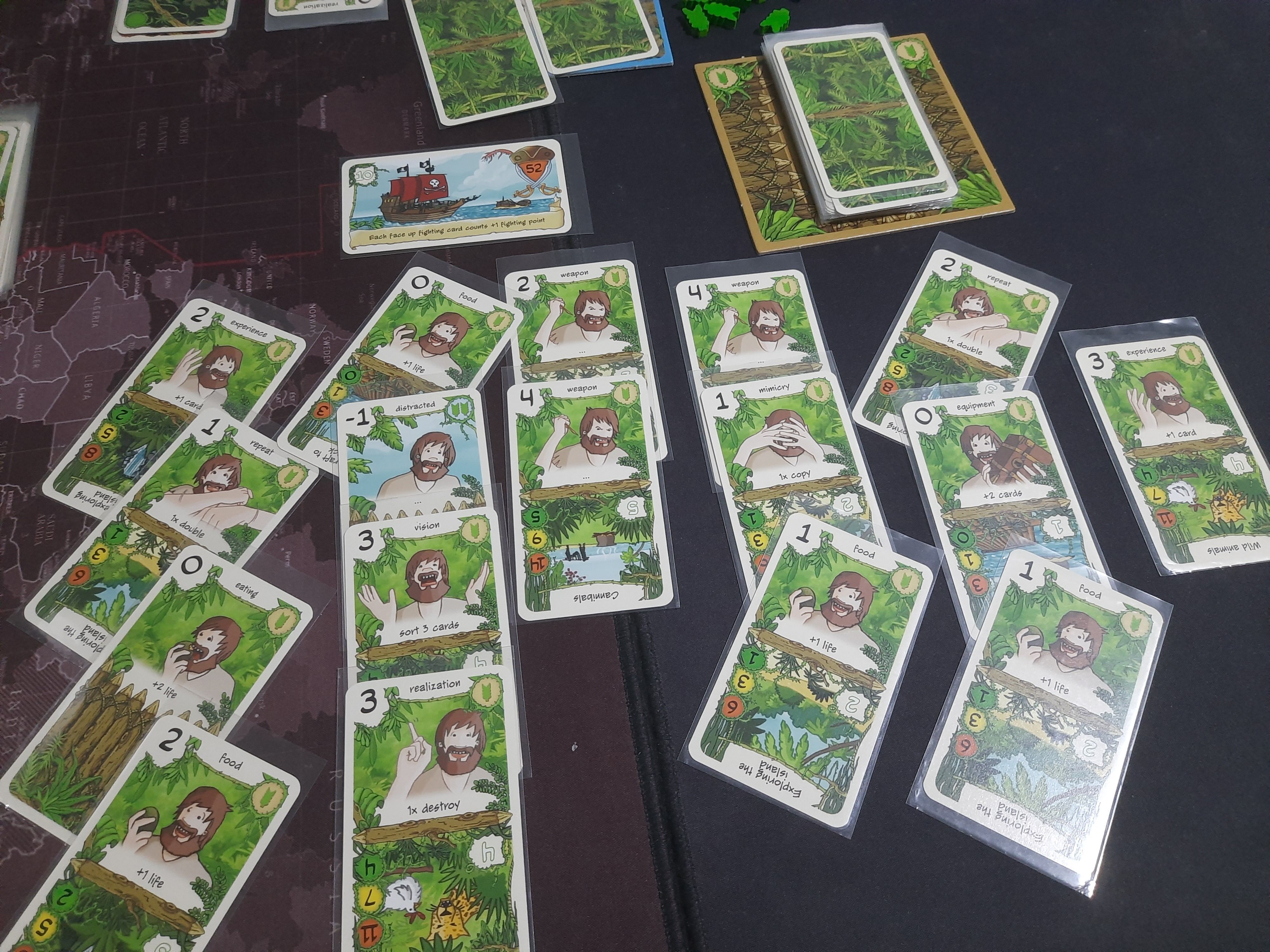 EAT FOOD action is tricky but essential. You want to have a lot of cards to have more options. But you need to have the food first. In Multiplayer, you don’t have hand size limit but you can only draw up to 5 that you need to spread them out to every player. This is different with Solo mode where you can only have 12 but not a hard limit.