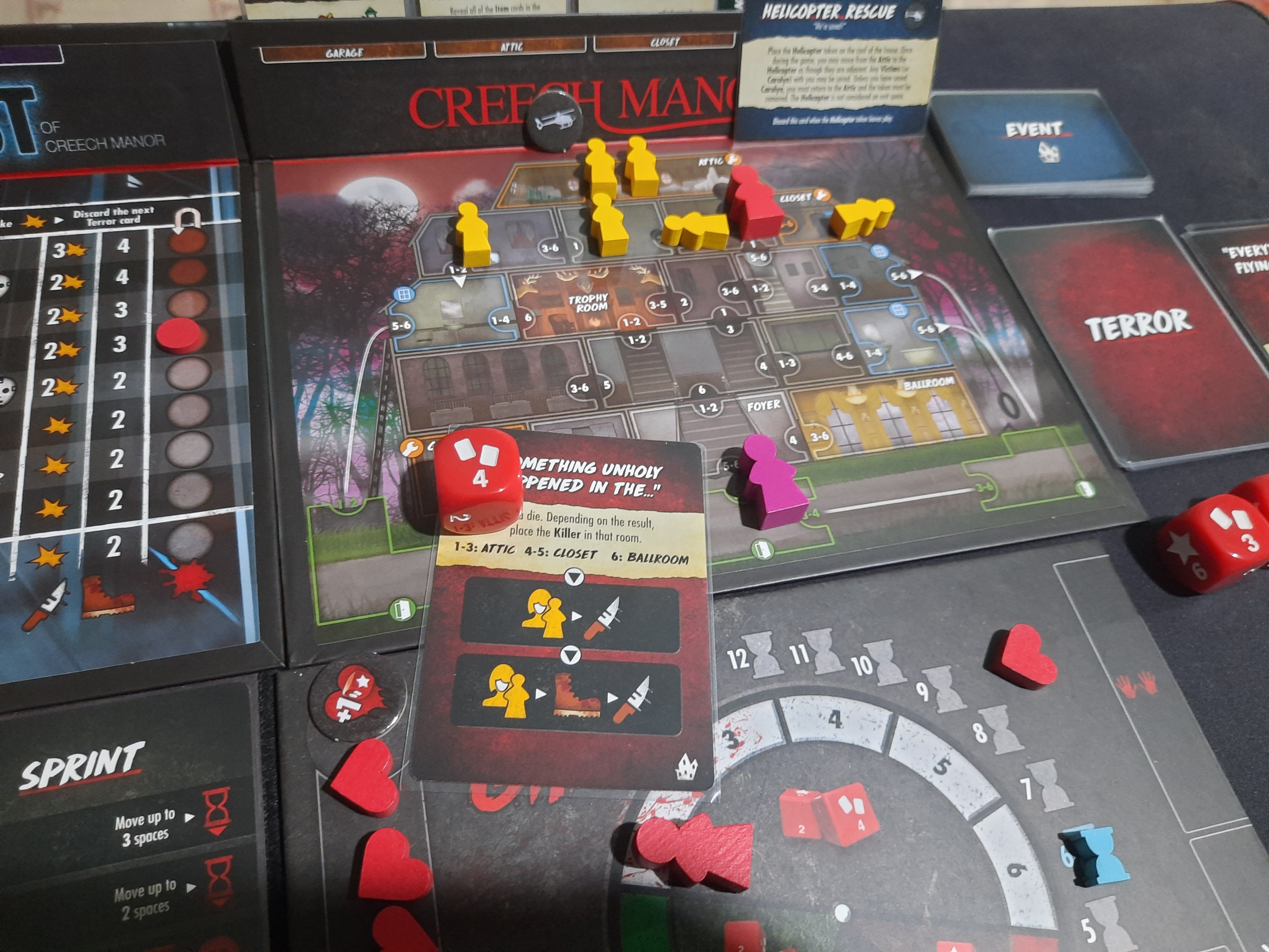Another change from previous play was that I tried the more difficult variant of the Darkhouse module. Instead of using 4 red cards plus 1 blue, I played with 5 red Darkhouse cards.