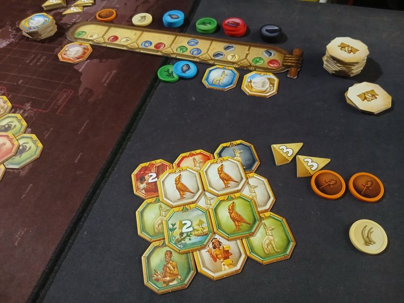 The Ankh Token can also be spent to move the tiles. Depending on the random order of how the tiles will come out and our opponent’s progress, there will be times when we have to change plan and try to collect other things. That is how having the Ankh is always helpful.