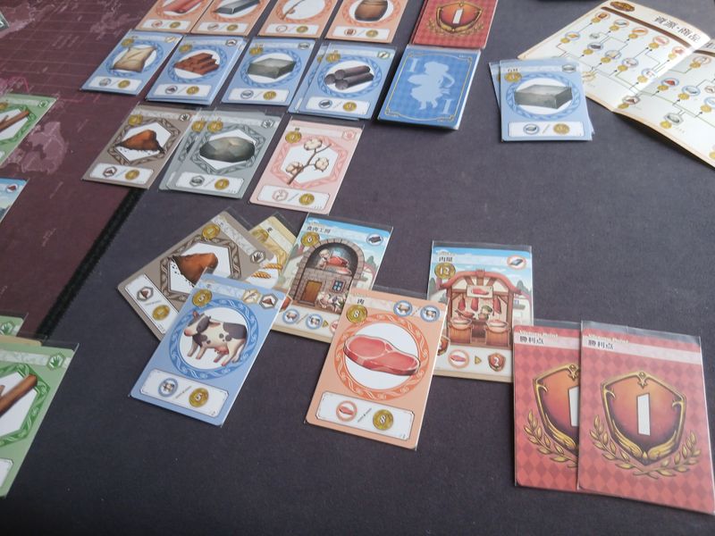 Some production chains has higher flexibility to switch to different products or chains. Like between Cattle to Meat, Leather and Milk while Sheep is limited to just Meat and maybe Thread which can lead to Cloth. The game comes with all Production charts in player sheet to help players make a long term strategy while being flexible in tactical level.