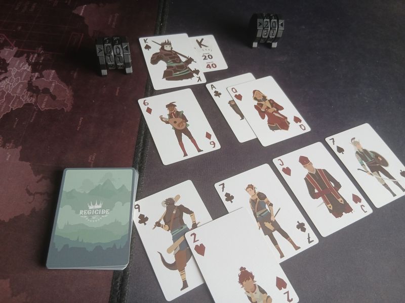 Regicide is a cooperative game for 1 to 4 players that we can play using the Standard Playing cards with 52 cards, 4 suits and 2 Joker cards. Thematically, the game is set in fantasy world where players are leading group of characters trying to overthrown the corrupt Kings.