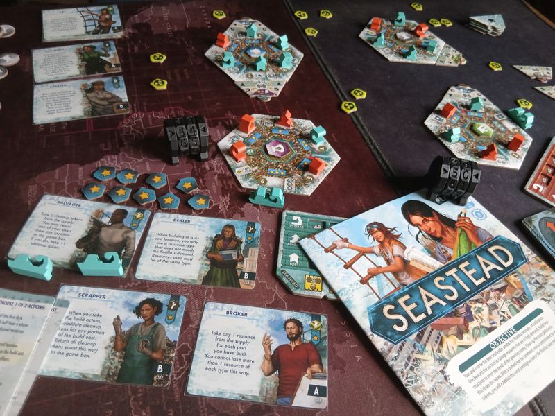 I also put turn-by-turn pictures of a session and unboxing pictures for every game on my collection that anybody can find on my Instagram. For this game, search for #SeasteadAtHomeOfMark on IG for all of the sessions.