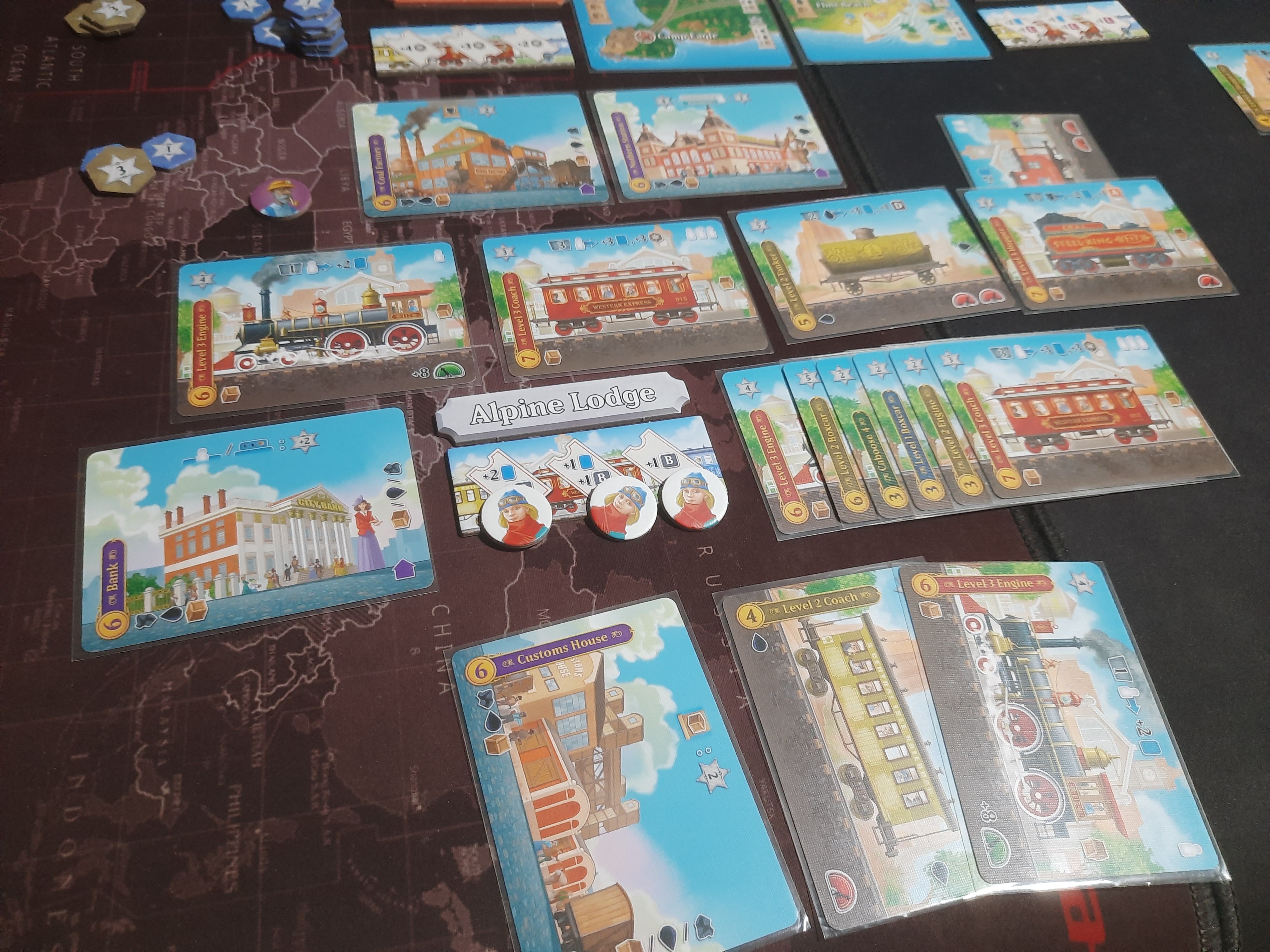 1st player followed but with Red, White and Black. 2nd player bought the Black Jackal from 3rd space. This was placed at the bottom right, 2nd level so with a discount of red. This was also their 5th Black and 2nd Jackal.