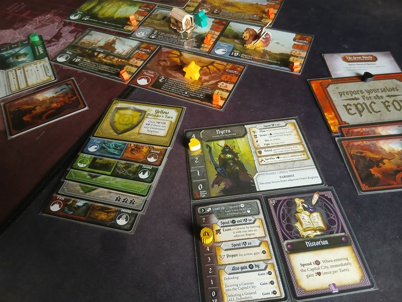 To escort them, everytime a Defender choose to spend 1 AP to move, they can also spend their XP, another new feature to lure those caravans. These Caravans will not be attacked but unless we can bring all 6 to the Capital City, the HP of Epic Foe will not go to zero.